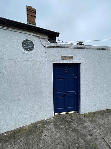 Unterbrochen wurde meine konzentrierte Arbeit nur durch das Wochenende, an dem die Lesesäle der Bibliothek geschlossen waren. Die freie Zeit nutzte ich, um nach Howth zu fahren. Howth ist ein kleiner Küstenort in der Nähe von Dublin. Dort wohnte der irische Literaturnobelpreisträger William Butler Yeats für ein paare Jahre seiner Jugend. Das Essay „Village Ghosts“ aus seiner berühmten Textsammlung „The Celtic Twilight“ spielt in diesem Ort. Trotz irischem Regenwetter und Sturm unternahm ich eine Klippenwanderung an der malerischen Küste und begab mich auf die Spuren von Yeats. Je eine Plakette markierte sein ehemaliges Wohnhaus und eine Straße, die er in „Village Ghosts“ als verwunschenen „Faeries Path“ beschrieben hat. Die meisten Tourist:innen zogen daran vorüber, ohne sich der Bedeutung der historischen Plätze bewusst zu sein, aber ich freute mich sehr, die Orte gefunden zu haben.
